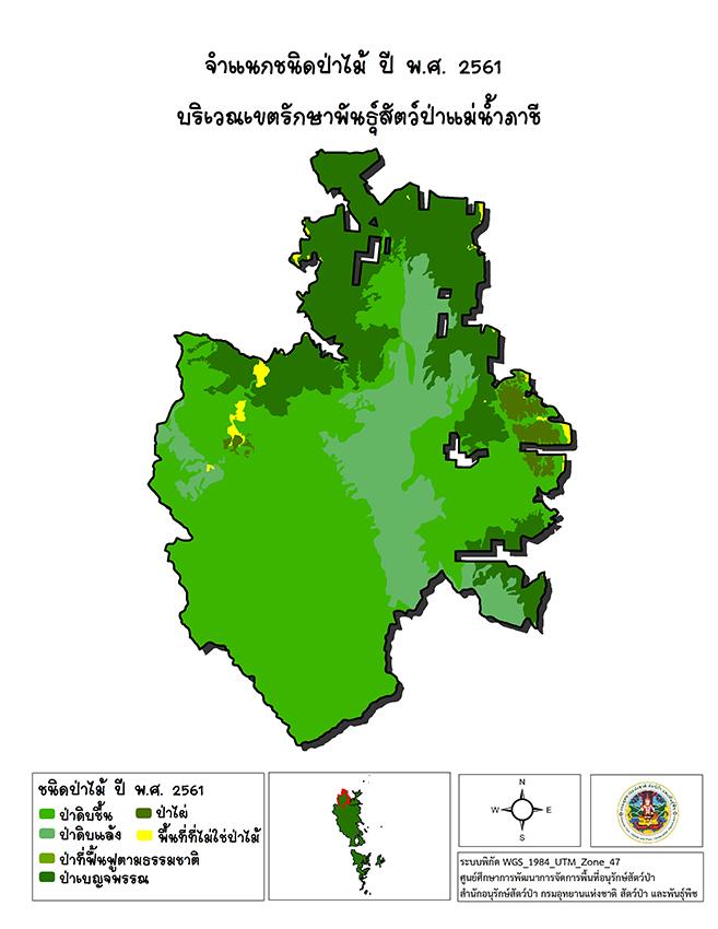 ป่าดิบชื้น ป่าดิบแล้ง ป่าที่ฟื้นฟูตามธรรมชาติ ป่าเบญจพรรณ ป่าไผ่ และพื้นที่ที่ไม่ใช่ป่า