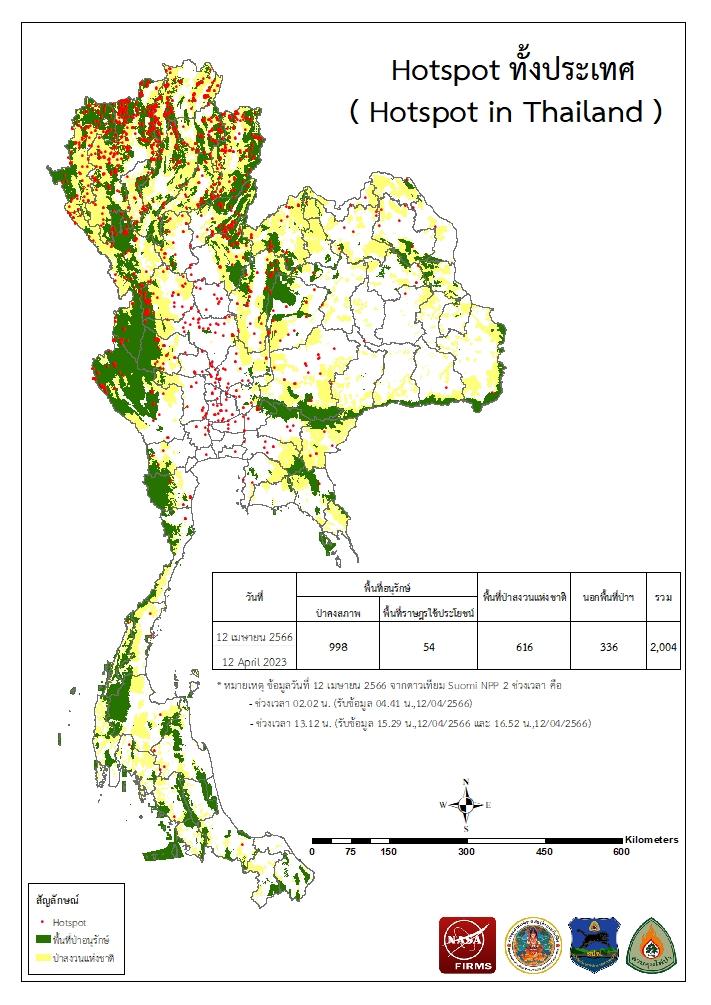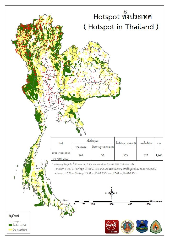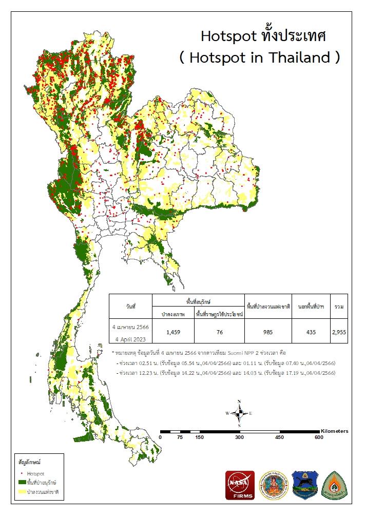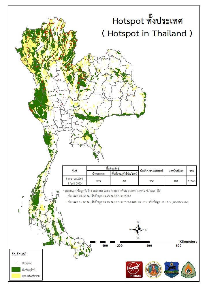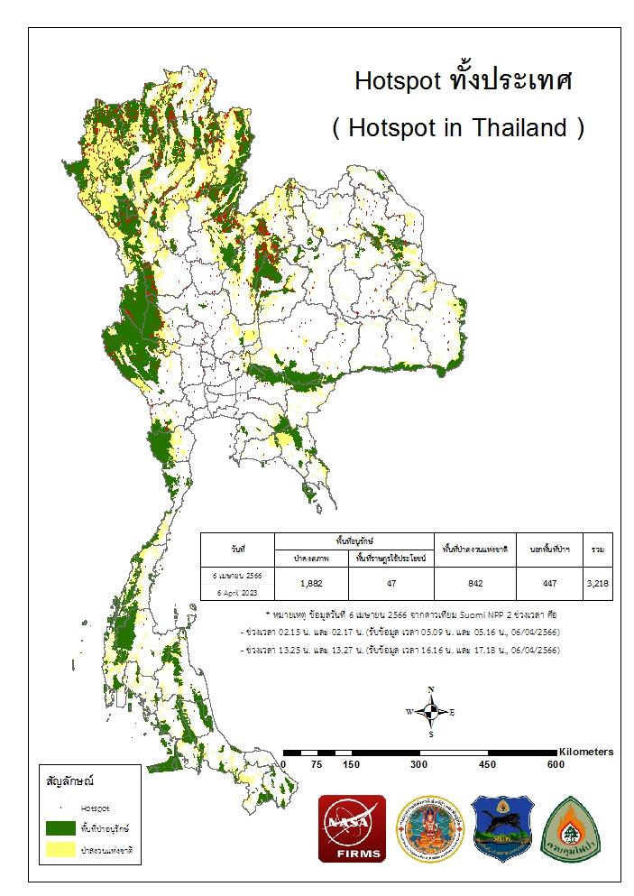 แผนที่แสดงจุดที่ดาวเทียมตรวจพบความร้อนซึ่งมีโอกาสเป็นบริเวณที่เกิดไฟไหม้ (Hotspot)