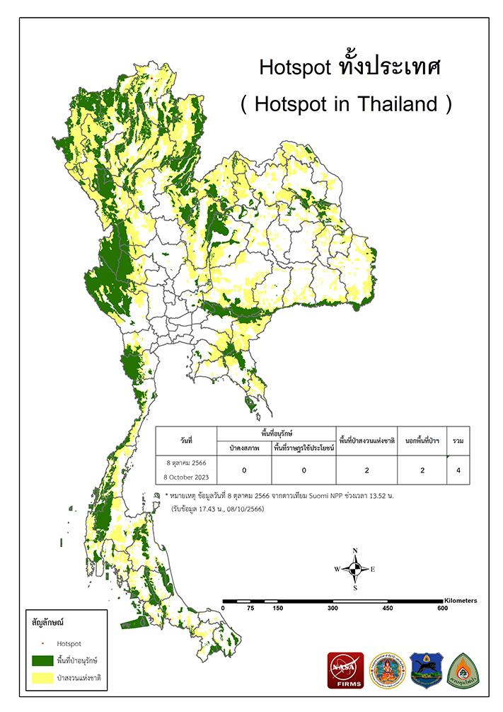 แผนที่แสดงจุดที่ดาวเทียมตรวจพบความร้อนซึ่งมีโอกาสเป็นบริเวณที่เกิดไฟไหม้ (Hotspot)