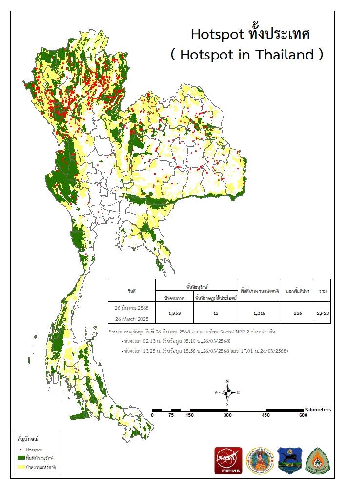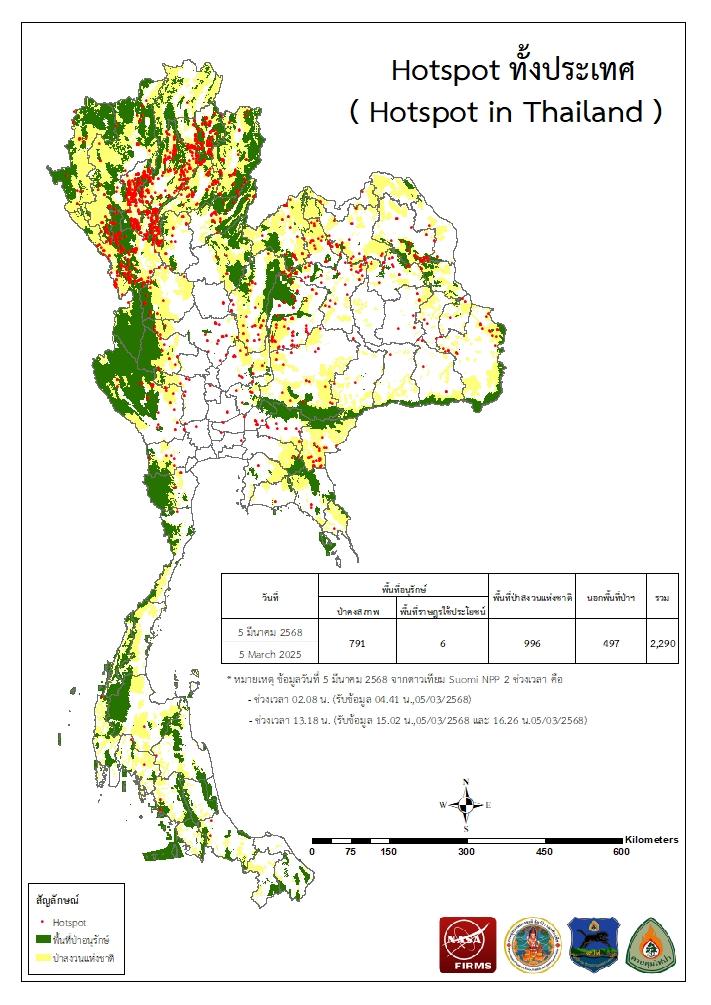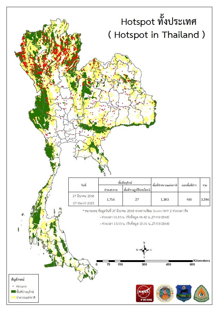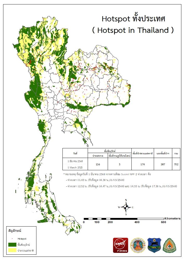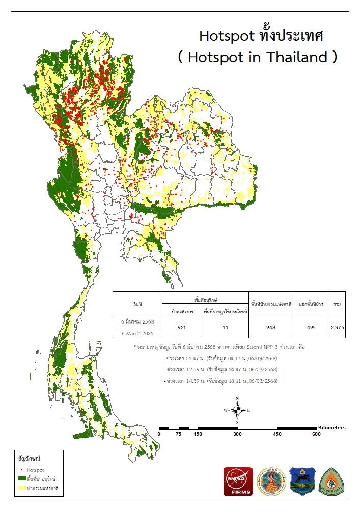 จากดาวเทียม Suomi NPP - VIIRS ประจำเดือนมีนาคม 2568