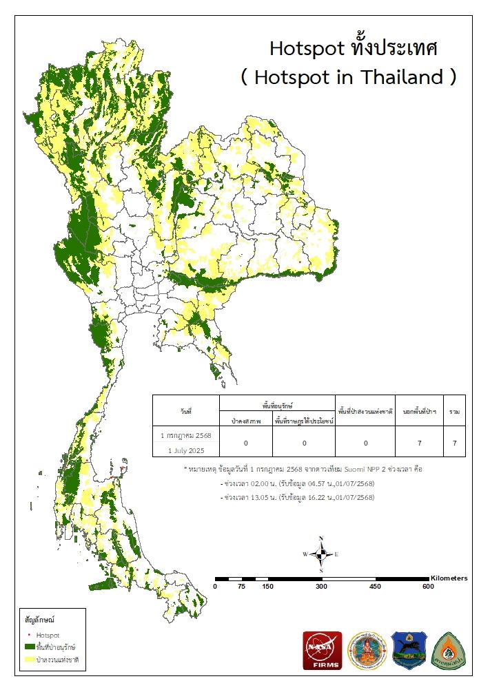 จากดาวเทียม Suomi NPP - VIIRS ประจำเดือน กรกฎาคม 2568