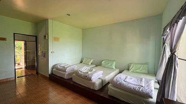 สิ่งอำนวยความสะดวก : มีเครื่องนอน (เตียง 3.5 ฟุต), เครื่องทำน้ำอุ่น, พัดลม, ผ้าเช็ดตัว
