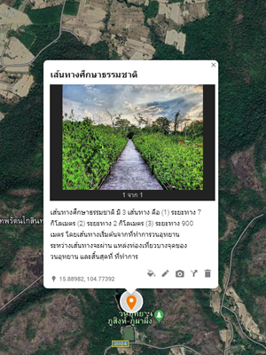 โดยเส้นทางเริ่มต้นจากที่ทำการวนอุทยาน ระหว่างเส้นทางจะผ่าน แหล่งท่องเที่ยวบางจุดของวนอุทยาน และสิ้นสุดที่ ที่ทำการ