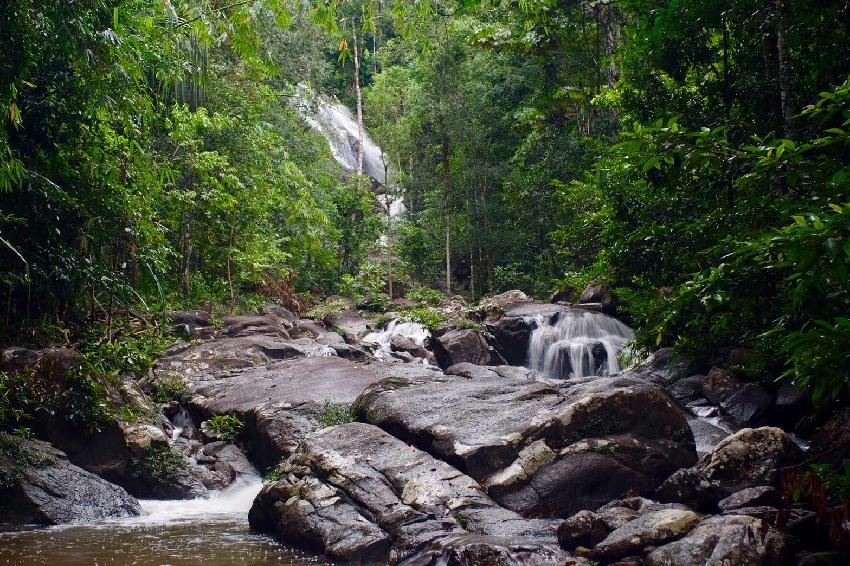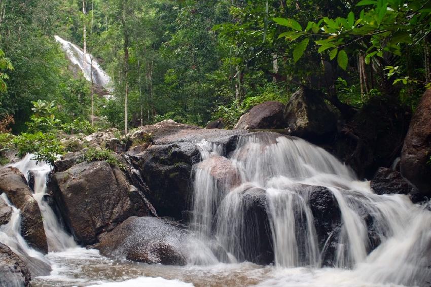 น้ำตกธาราสวรรค์ เป็นน้ำตกที่สวยงาม ประกอบด้วยน้ำตกจำนวน 3 ชั้น โดยมีชื่อเรียก คือ น้ำตกโตนต่ำ น้ำตกสายฝน และน้ำตกสอยดาว ตามลำดับ ซึ่งน้ำนั้นไหลมาจากจากป่าดงดิบ มีน้ำไหลตลอดปี และมีทางเดินเรียบน้ำตกเป็นระยะทางประมาณ 300 เมตร