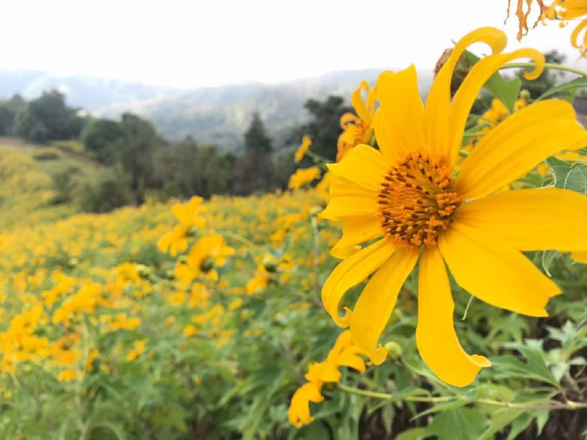 เป็นป่าดิบเขา บริเวณบนภูเขาได้ผ่านการทำการเกษตรมาแล้วหลายปีมีต้นไม้ขึ้นไม่หนาแน่น ส่วนบริเวณที่เป็นที่โล่งจะมีดอกบัวตองขึ้นอยู่เต็มพื้นที่ สำหรับบริเวณหุบเขาซึ่งมีลำห้วยและมีน้ำไหลตลอดปีจะมีสภาพป่าที่อุดมสมบูรณ์ มีพันธุ์ไม้ทั้งยืนต้นและไม้ชั้นล่าง เช่น เฟิร์น ไลเคน บอน มะหูด หญ้าชนิดต่างๆ รวมถึง ลูกไม้ ชนิดพันธุ์ไม้ยืนต้นที่พบได้ ก่อแป้น แดงน้ำ เสี้ยวดอกขาว ก่อเดือย มะไฟป่า ไผ่ป่า มะหลอด ประดู่ กาสลองคำ เงาะป่า ปอเลียง มะขามป้อม แคหางค่าง ตะแบกใหญ่ ตะเคียนทอง ทะโล้ มะเดื่อ ข่อย ปอกระสา กระพี้จั่น ทองหลาง และสัตว์ป่าที่พบ ได้แก่ อีเห็น กระต่าย และนกชนิดต่างๆ เป็นต้น
