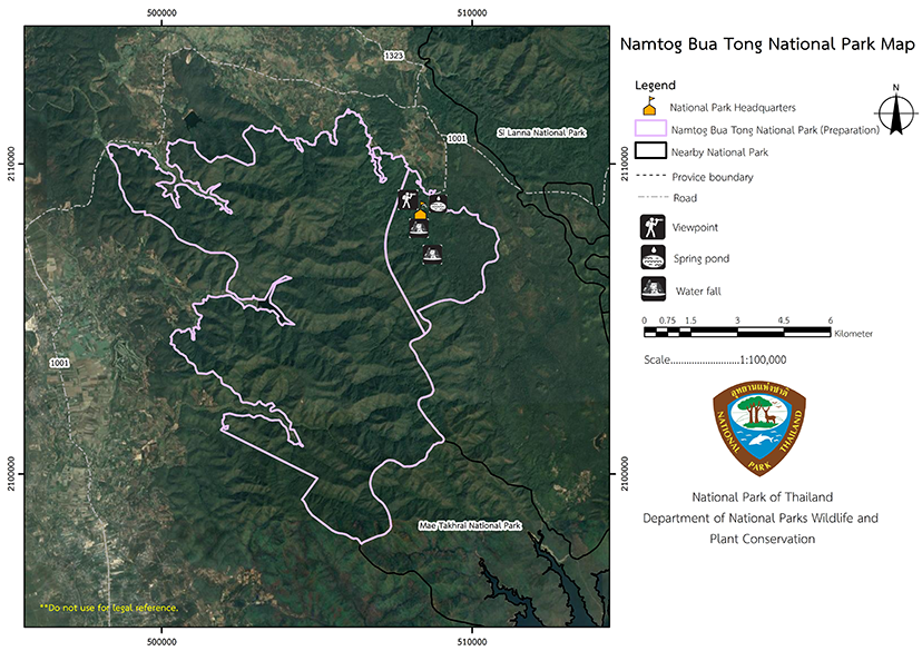 Contact Location : Namtok Bua Tong - Nam Phu Chet Si National Park, Moo 8, Mae Ho Phra Sub-district, Mae Taeng District, Chiang Mai Province