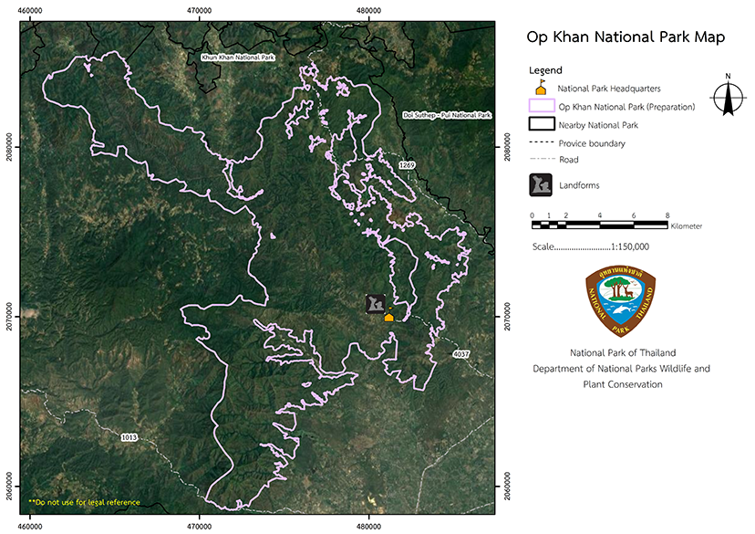 The National Park Division considered approving the National Park in its current configuration, but decided to conduct a survery According to National Park Board Meeting No. 2/2535 dated May 25th, 1992, the Royal Forest Department was authorizedto conduct a survey in order to establish the Op Khan National Park in Chiang Mai Province. The Royal Forest Department determined in 1961 that it should be established as a National Park by submitting a draft decree establishing a National Park under Section 6 of the National Park Act..