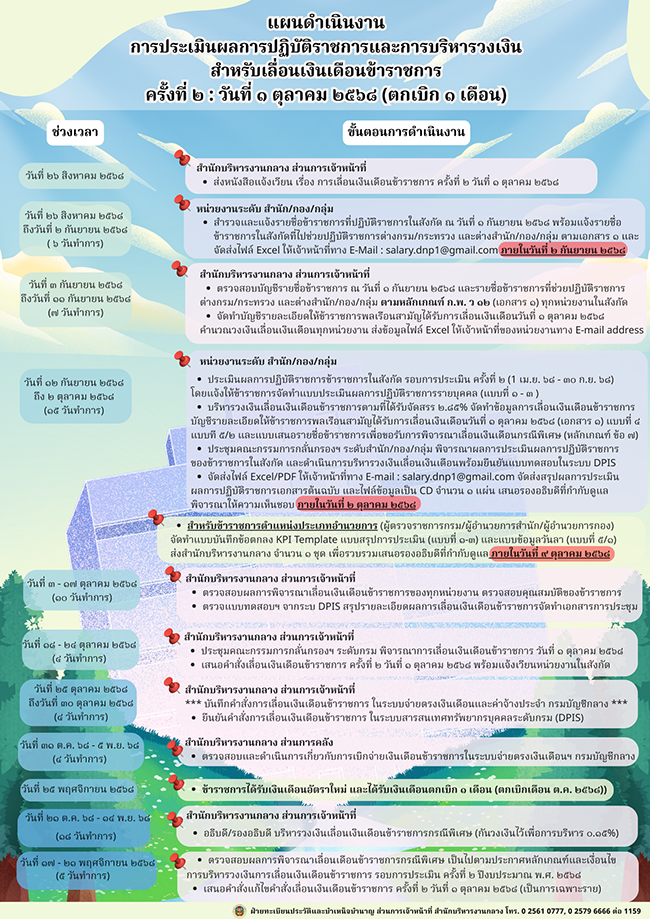 สิ่งที่ส่งมาด้วย 2 : แผนดำเนินงานการเลื่อนเงินเดือนข้าราชการ ครั้งที่ 2 วันที่ 1 ตุลาคม 2568